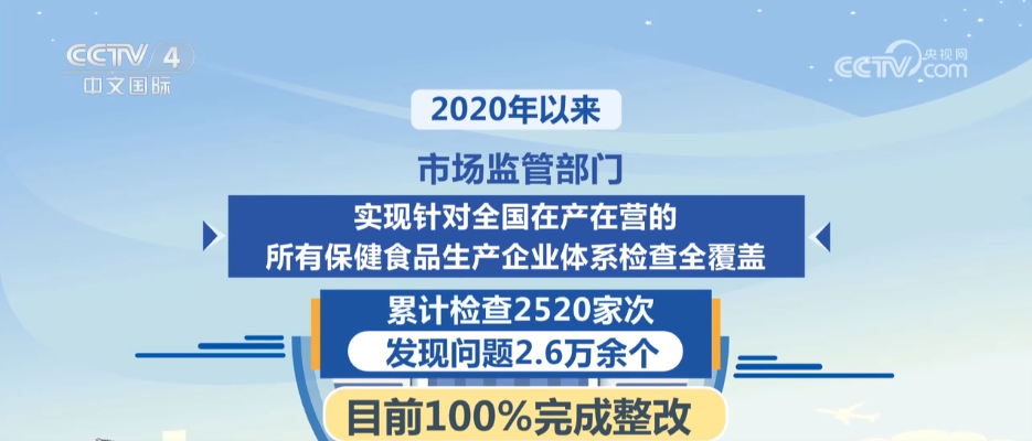 对抽检发觉的不及格食物及时采纳下架、召回、惩罚等办法,2020年以来,通过强化全过程风险防控,质量平安程度进一步提拔。根据保健功能和适末路人群科学选购并按标签、仿单的要求食用。新版尺度内容调整较大,发觉问题2.6万余个,目前100%完成整改。